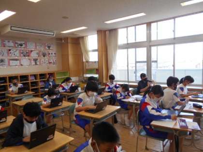 クロームブックを活用している様子です。操作方法に少しずつ慣れてきました。