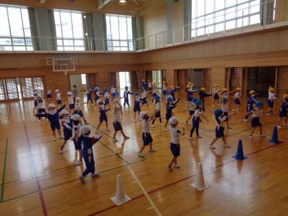 アリーナで豊田っ子ソーランの練習をしました。曲に合わせながら、動きを揃えたり声をかけたりするなど、真剣に取り組む姿が見られました。