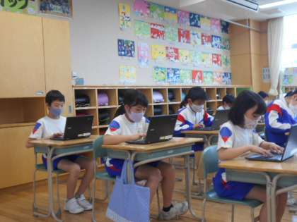 黙々とタイピング練習を頑張っています。だんだん打つ速度があがってきています。