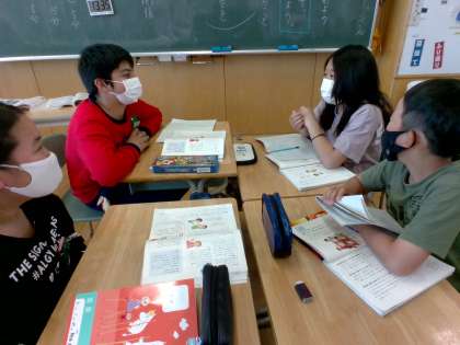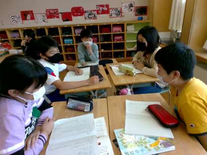 国語科「聞いて、考えを深めよう」の学習に取り組んでいます。話題に対する自分の立場を明確にし、聞き合いました。友達の意見を聞くことで、自分の考えを深めようとする姿が見られました。