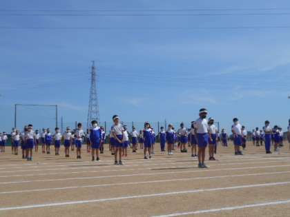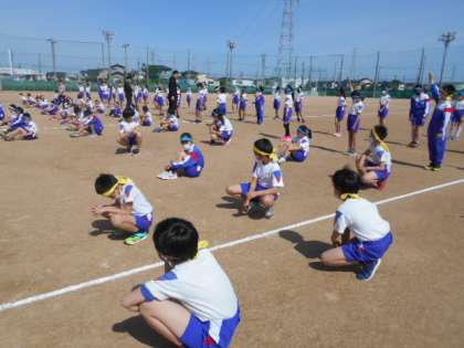 4年生は5月17日に行われランRUNオリンピックに向けて、練習を行っています。開閉会式での整列の仕方を確認しました。