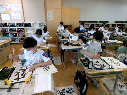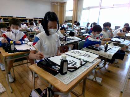 「成長」を書きました。字形を意識して、一画ずつ丁寧に取り組んでいます。