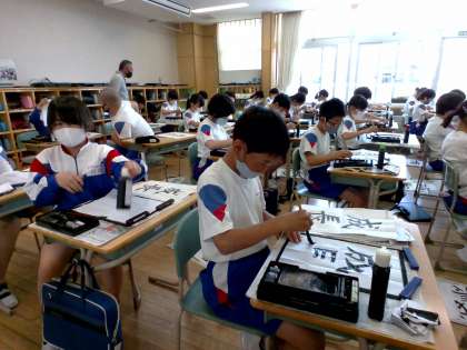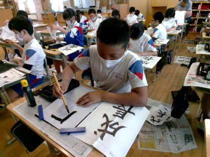 「成長」を書きました。字形を意識して、一画ずつ丁寧に取り組んでいます。