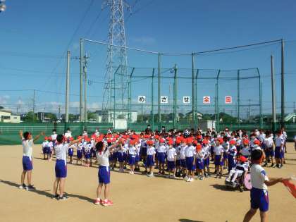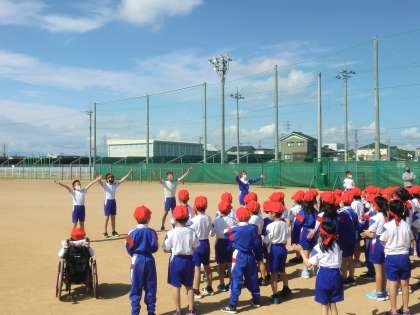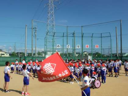 赤団は、バックネット側に集合して結団式を行いました。
