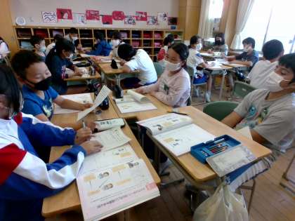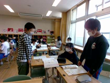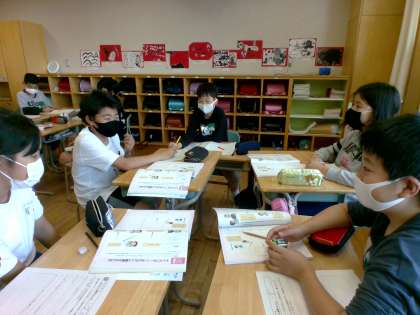 道徳科では、「ナイスリターン」の学習を行いました。相手の気持ちを考えながら、自分も相手も納得できるように言葉のキャッチボールができるようにするには、どうすればよいか考えました。