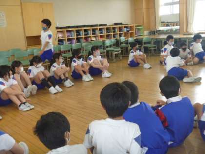 今日の豊田っ子タイムは「ハッピー集会」を行いました。ハンカチ落としや大根抜きを楽しんでいました。