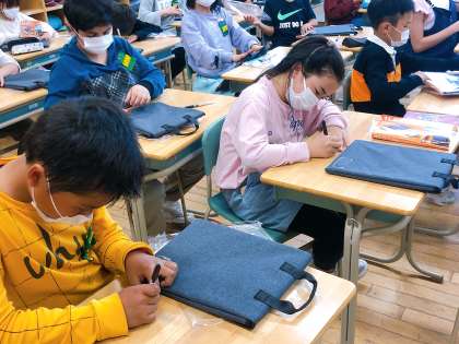 Chromebook専用の鞄を配付しました。大切に使ってくださいね。