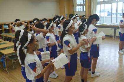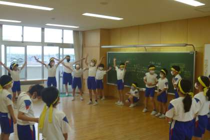 明日はいよいよランRUNオリンピックです。リーダーを中心に各団応援の確認や声出しを行いました。