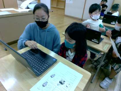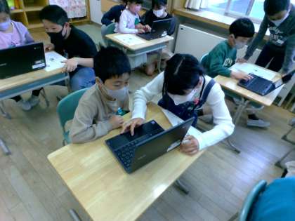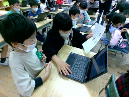 1年生にとって初めてのChromeBook利用を手伝いました。相手の目線になって聞いたり、話したりと優しく関わる姿が見られました。