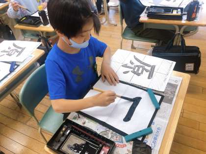部分の組み立てを意識しながら「原」という漢字を練習しています。