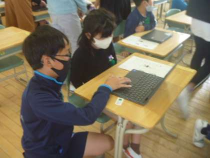 6年生 1年生さんのお手伝い(その1) 公開日 2021/05/18 更新日 2021/05/18 6年生 今日の6年生は、一年生さんのお手伝いをしました。 クロムブックの初期設定を一緒にして、アンケートに答えました。