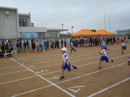何度もスタートの練習をした50m走。どの子供もゴールに向かって、一生懸命走る姿が見られました。閉会式では、各組の1位の子供たちがみんなから拍手をもらい、とても嬉しそうでした。