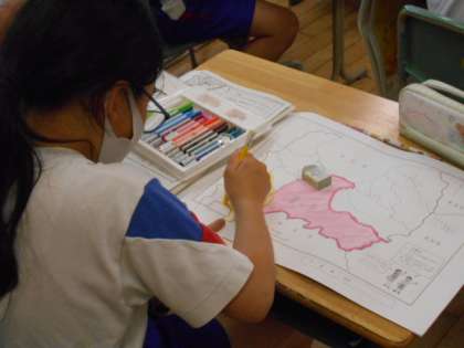 4組では、白地図を用いて富山県内の様子をまとめていました。