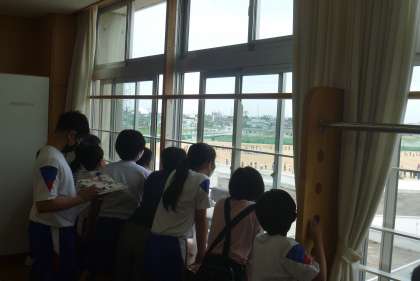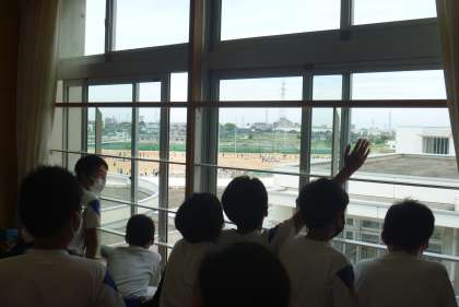 今日は、3、4年生のランRUNオリンピックでした。授業中も、グラウンドから聞こえてくる歓声にソワソワしていた子供たちは、休み時間になると、窓から自分たちの団を応援していました。