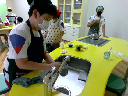 湯を沸かしました。班で役割を決め、協力して活動する姿がありました。