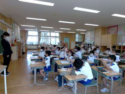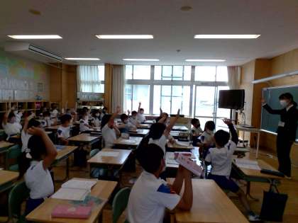 学年集会で教育実習生の先生を紹介してもらった後、3年4組では教育実習生の先生に質問をしました。子供たちは好きな食べ物や好きなスポーツなど興味津々に聞いていました。これから1ヶ月間一緒に勉強したり運動したりするのが楽しみです。