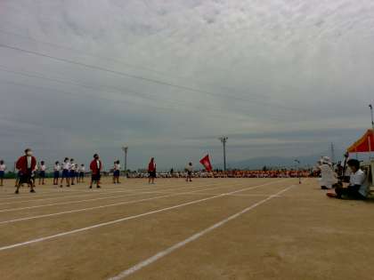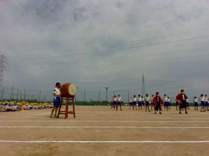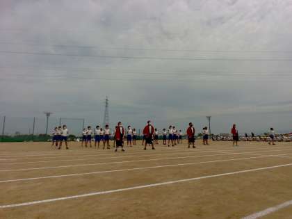 運動会に先立ち応援合戦を披露しました。各団マスクを着用、2m離れる、同方向に向けるなどの感染症対策を講じて行いました。