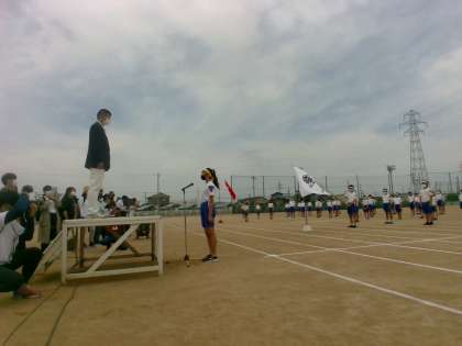 開会式の様子です。運動委員長が6年生の代表として挨拶しました。堂々と話していました。