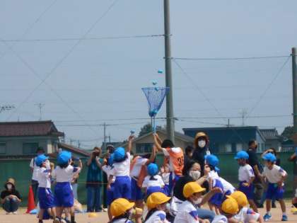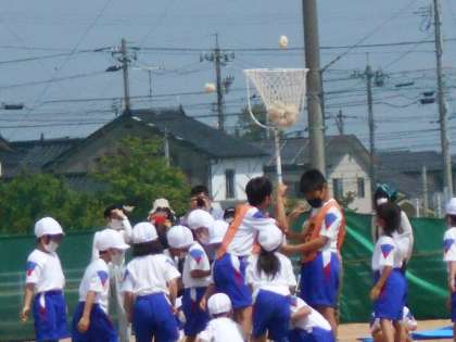 玉が入りやすくなるよう、ジャンプして投げている子供もいました。