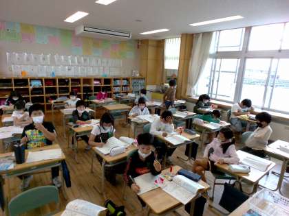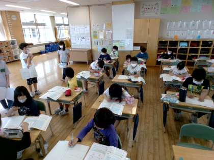 2つの問題を比べ、似ているところや違うところを考えました。「求める答えが違っても、式が一緒になることがあるんだ!」と驚いていました。
