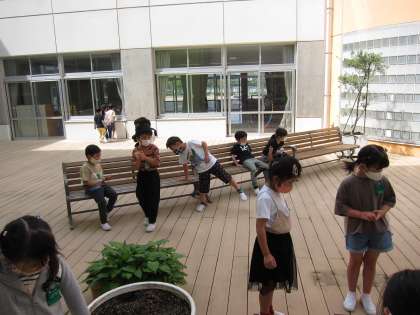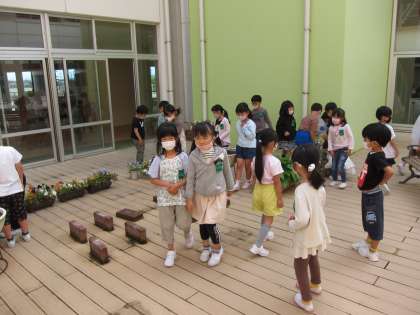 生活科「がっこうたんけん」の学習で、うさぎの光庭を探検しました。