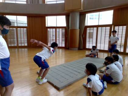 立ち幅跳びをしました。相談しながらより遠くへ跳べるように、楽しみながら考える姿がありました。