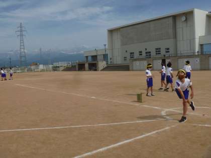 より遠くに投げられるよう、ボールを持つ位置や投げる角度に気を付けました。