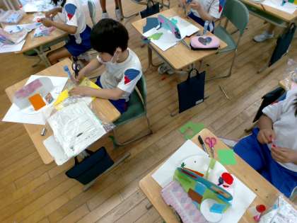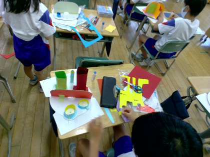 引き続き「くるくるランド」を作りました。前回よりも、形や色を工夫していました。