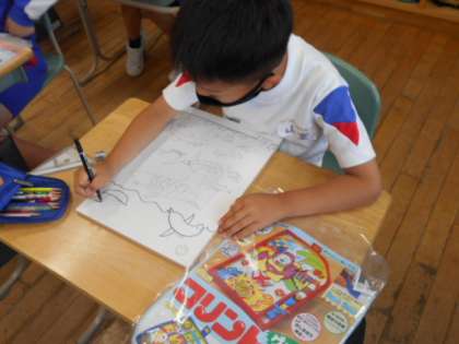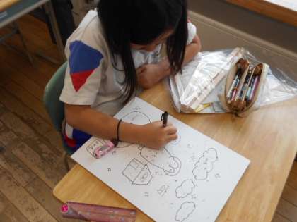 木材に下書きをしました。色塗りの作業に入った児童もいました。