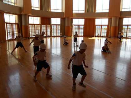 6月には、体育科でスポーツテストを行います。今日は、反復横跳びの練習をしました。足の運びが難しそうでしたが、だんだん上手になって、すばやく跳べるようになりました。