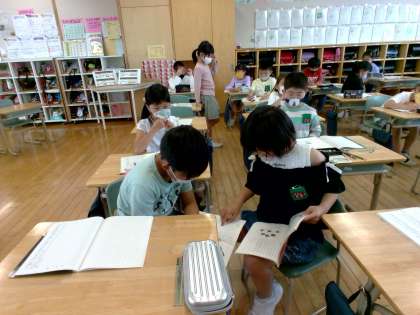 「こまを楽しむ」では、「問い」に対する「答え」を一生懸命探し、見付けました。すぐに見付けて教科書に線を書いたり、友達と確かめたりすることができました。