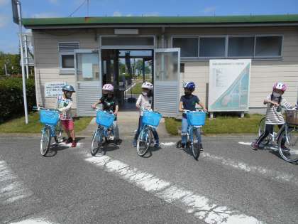 2組の自転車安全教室の様子です。まずは、自転車の正しい乗り方を教えていただいた後、自分の体に合う自転車を選びました。