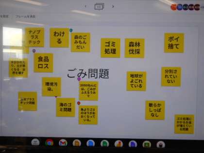 ゴミの処理と利用についての学習が始まりました。自分が知っているゴミ問題について意見を出し合い、ジャムボードで共有しました。