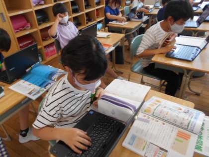 ごみのゆくえについて気になったことをchrome bookを用いて調べ学習を行っています。