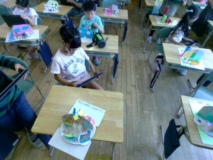 世界にたった1つの「くるくるランド」が完成しました。見たり動かしたりしながら想像を膨らませ、自分の作品の話をつくりました。