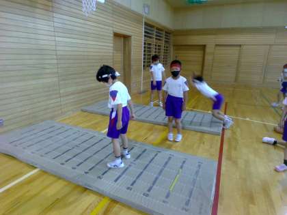 スポーツテストを行いました。今回は「反復横跳び」「上体起こし」「立ち幅跳び」を行いました。