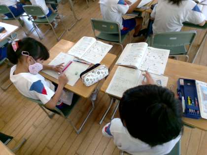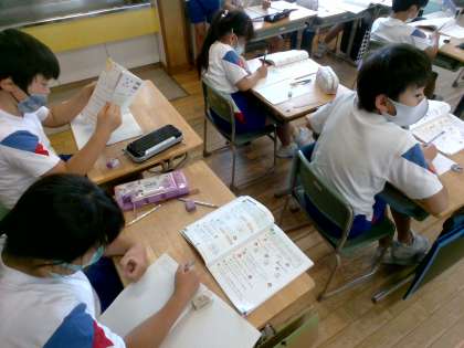 足して9000になる4桁同士の足し算の式を作りました。子どもたちは、「必ず一の位が足して10になる!!」「十の位と百の位は足して9だ!」と作り方を見つけ、式をたてました。