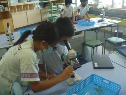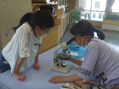 今日は、顕微鏡を使って池の中の水を観察しました。普段は肉眼で見ることのできない微生物をたくさん見ることができ、とても楽しそうに学習していました。