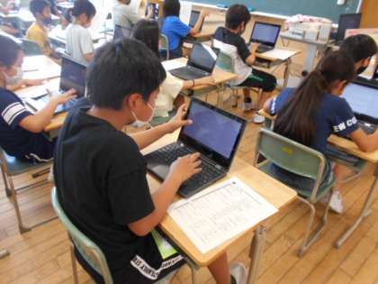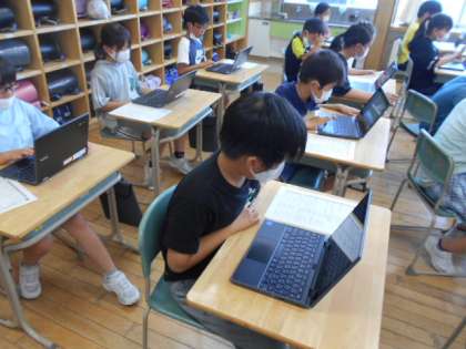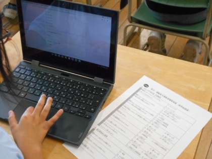 昨年までは紙媒体で行っていたアンケートも、chromebookを用いて、児童自ら入力を行っています。