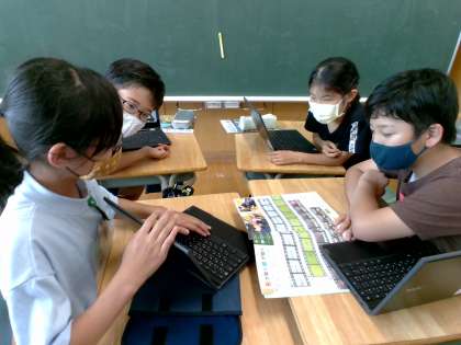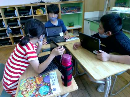 端末を活用して作ったストーリーを伝え合いました。それぞれの世界観を楽しむ姿が見られました。