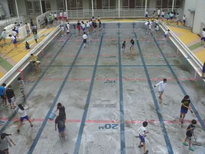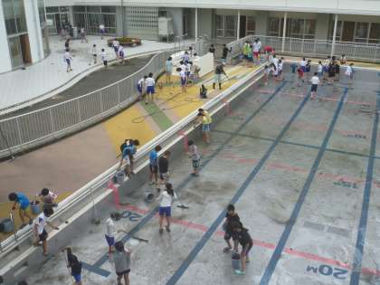 6年生がプール清掃を行いました。一生懸命に取り組んだおかげで、とてもきれいになりました。23日のプール開きが楽しみです。