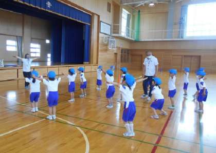 外部の体育指導員の方々に来ていただき、コオーディネーショントレーニングを学びました。