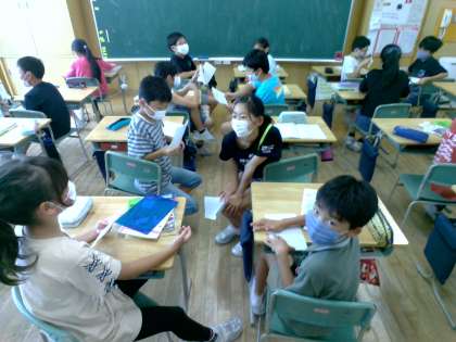 社会科「あたたかい土地のくらし」では、沖縄県のくらしの工夫を聞こうと絡めて調べました。調べた内容からキャッチコピーを考え、共有しました。