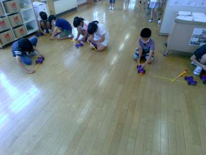 ゴムの伸ばし方によって、車の動き方が変わるかどうかを調べました。
