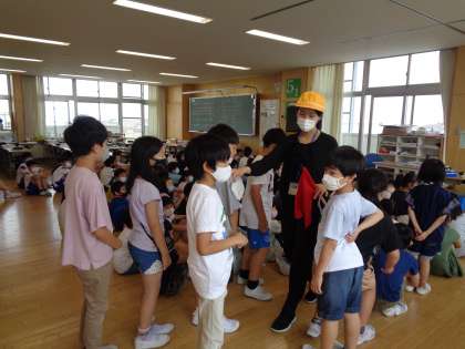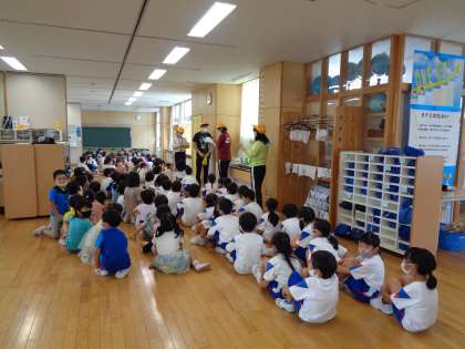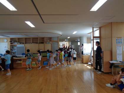 地震・津波発生を想定した避難訓練を行いました。津波の恐れがあるとの情報を元に、津波から身を守るため3階に避難しました。「おはしも」を守って速やかに避難できました。