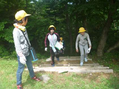自然いっぱいの中、友達と励まし合いながらポイントを探しました。
