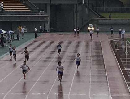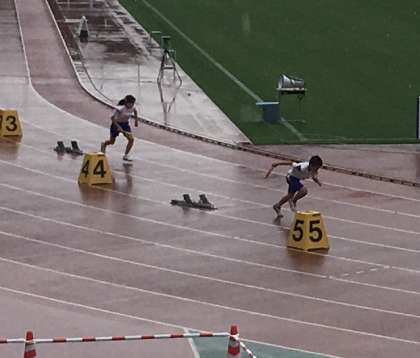 6年生男女混合4×100mリレーは、チーム新記録57.15秒が出ました。さらに、決勝に進出し、57.04秒と記録を更新しました。