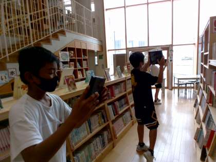 豊田小学校の校舎は平成22年に富山県建築賞を受賞しているすてきな校舎であることを伝え、そのデザインのよさを見つけてみようと子どもたちに投げかけました。学校内を鑑賞し、Chromebookを用いて撮影していると、今まで当たり前だった校舎の美しさを見つけられた様子です。