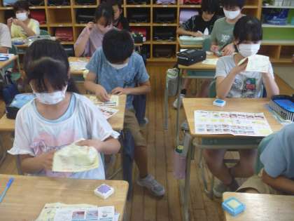 名前の縫い取りをしました。 玉結びや玉留めも上手に出来るようになりました。