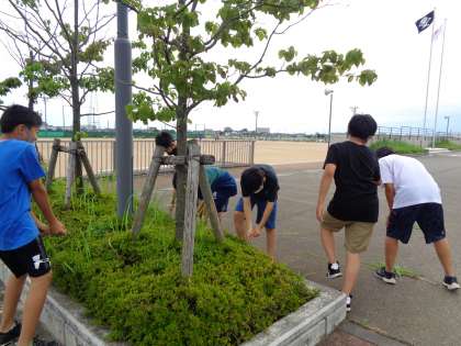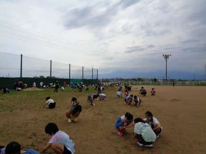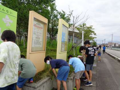 朝活動の時間に、3、4、6年生が学校周辺の草むしりを行いました。